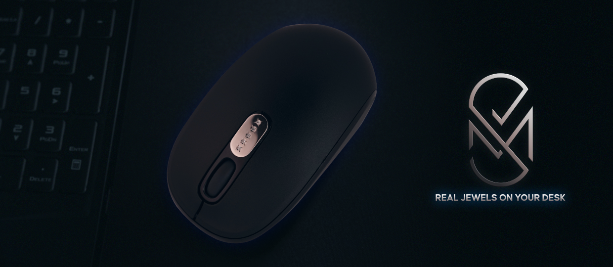 Our mouse embellished with real diamonds will give your workspace a touch of luxury and make you feel unique. It's an exclusive device adorned with 5 real brilliants on top of a silver plate. Top quality bluetooth mouse with 3 buttons.